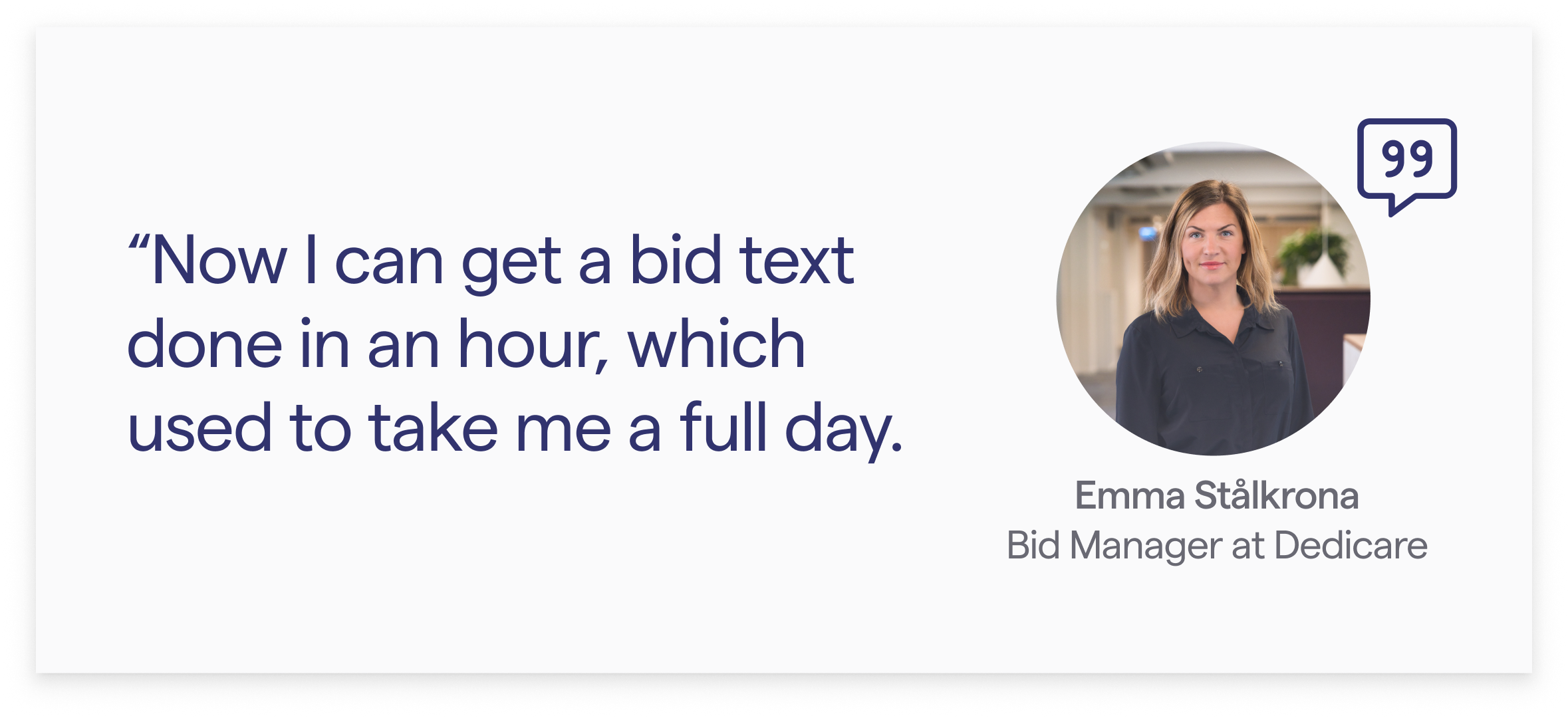 Previously, identifying relevant tenders and writing bids was a manual, labor-intensive process. Bid Manager Emma Stålkrona had to spend countless hours sorting through irrelevant tenders, downloading documents, reviewing requirements, checking off checklists, and rewriting bid content from lengthy templates. When time was short, Dedicare had to pass on certain opportunities.