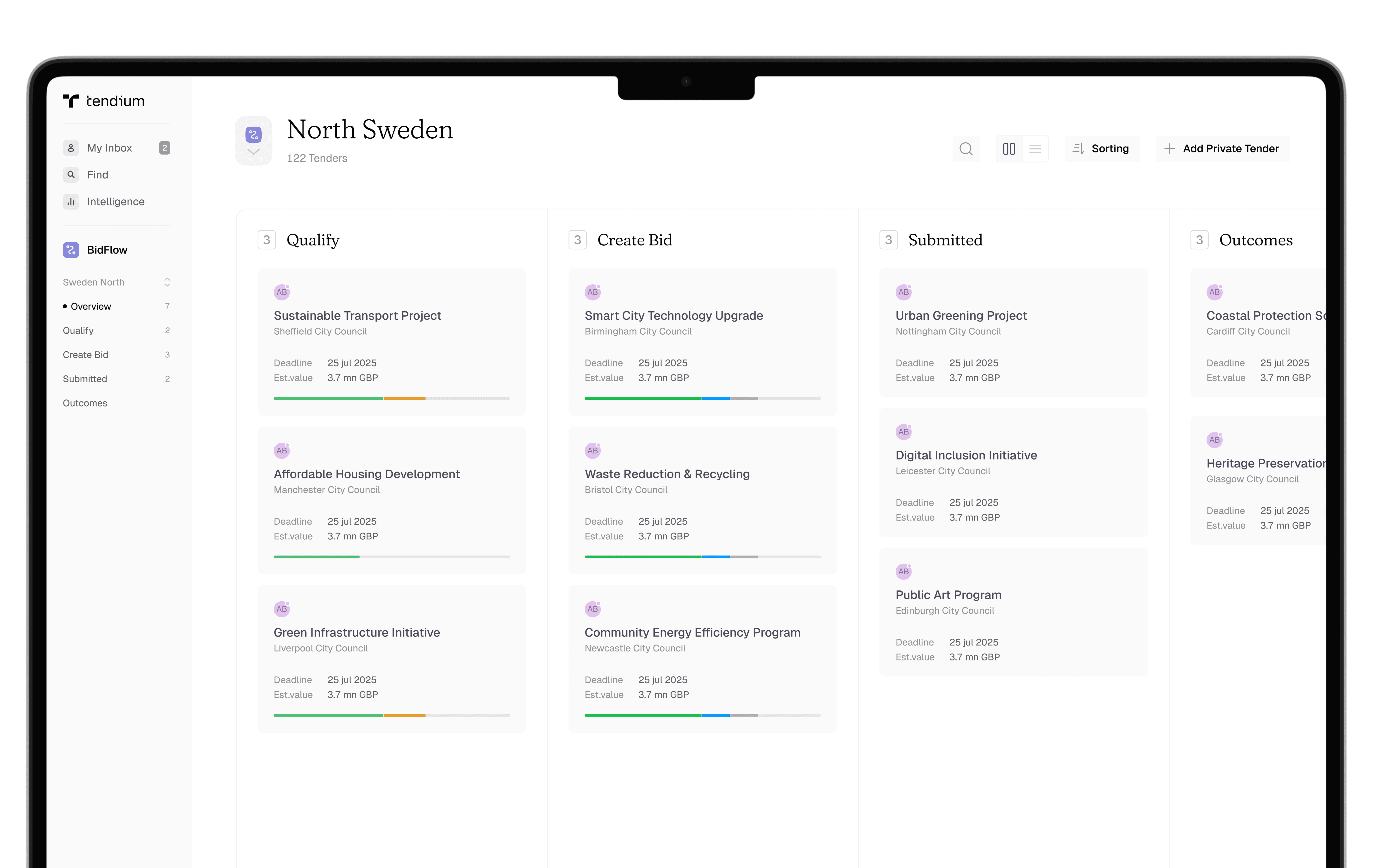 Track all your ongoing and previous bids in a kanban overview.