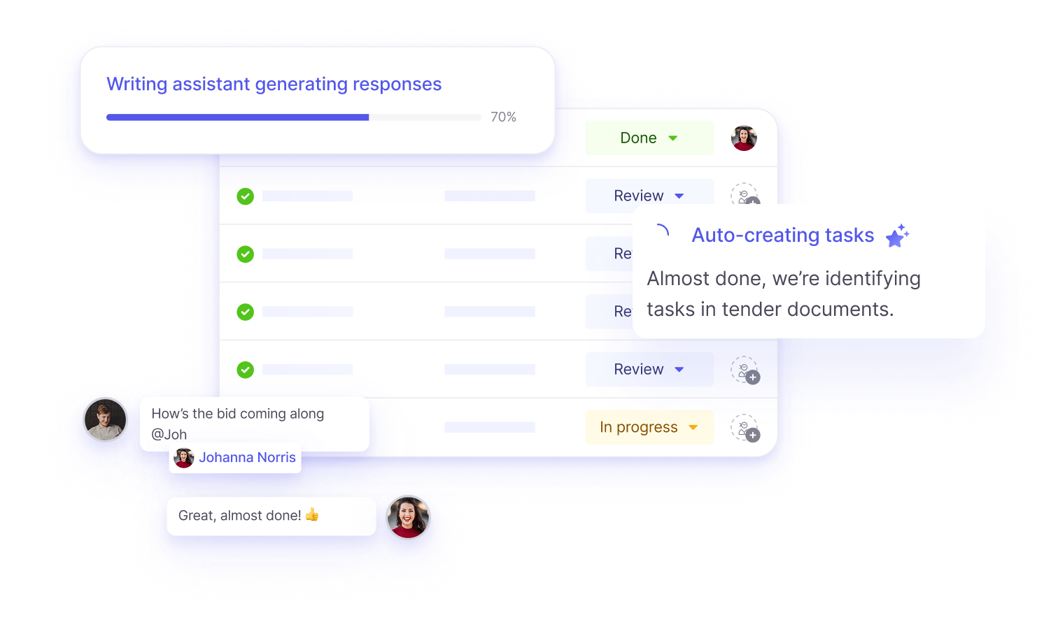 Your AI-powered writing assistant helps you reuse texts, refine wording, and complete a strong bid faster.